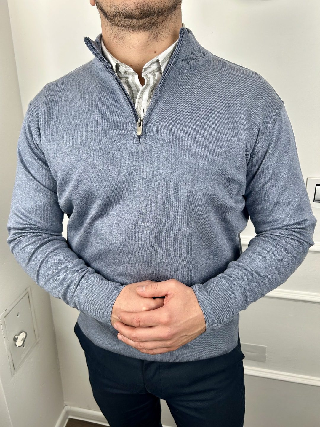 Izrađen od 50%vune i 50% konca, pruža prijatan osećaj na koži, dok podignuta kragna sa rajsferšlusom dodaje moderan i prefinjen izgled.