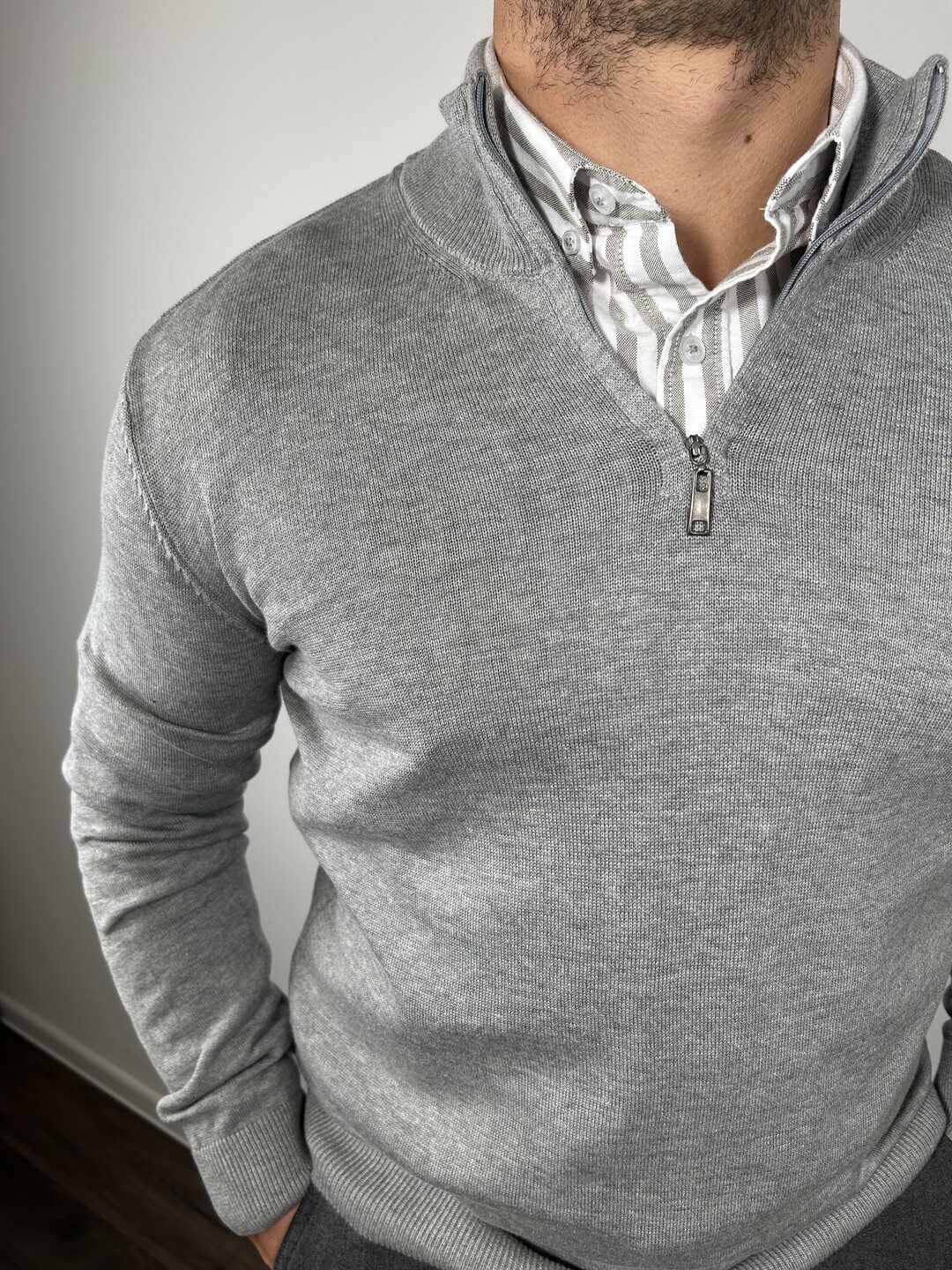 Izrađen od 50% pamuka i 50% konca, pruža prijatan osećaj na koži, dok podignuta kragna sa rajsferšlusom dodaje moderan i prefinjen izgled.